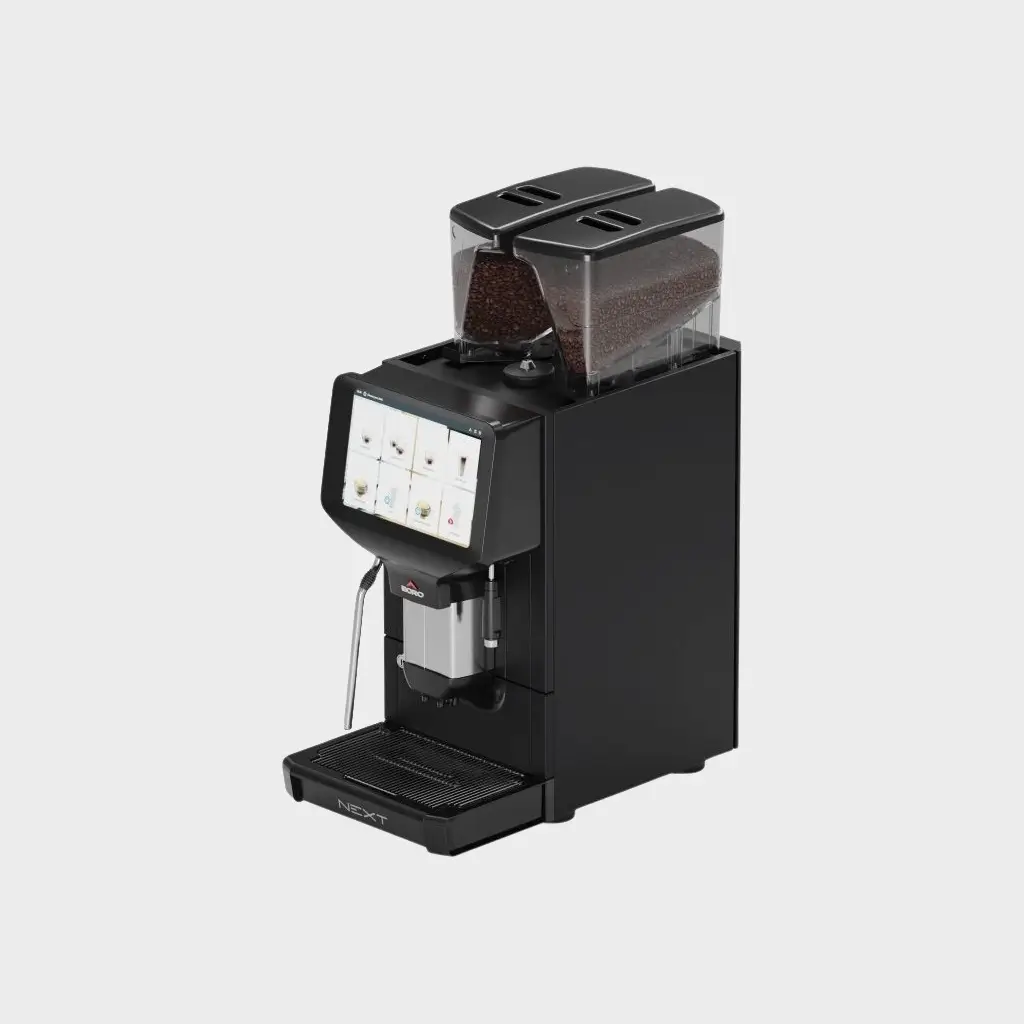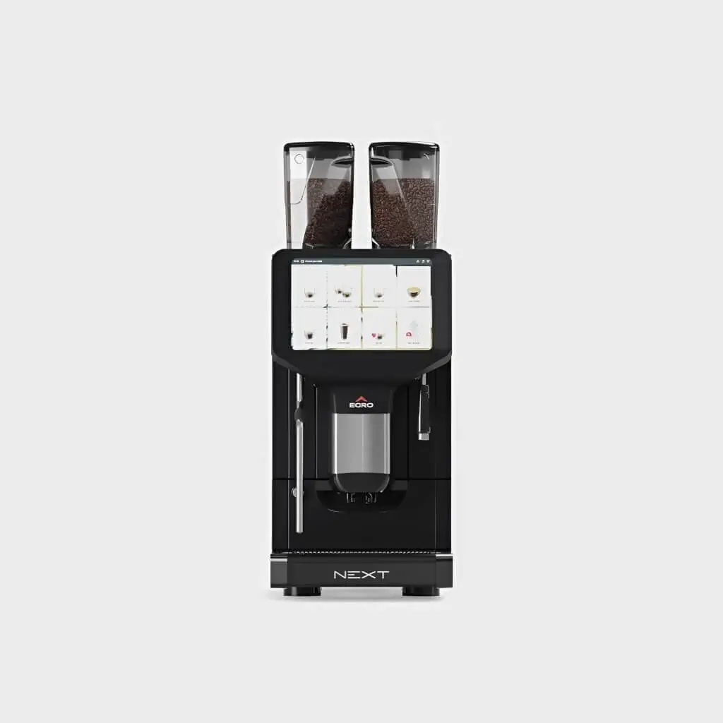Ten automat skupia się na czarnej kawie i gorącej wodzie. Dzienna wydajność sięga 250 filiżanek a stalowa grupa zaparzająca gwarantuje trwałość i powtarzalność naparu. Duży, 10‑calowy ekran dotykowy umożliwia tworzenie nieograniczonej liczby przepisów i łatwą personalizację.