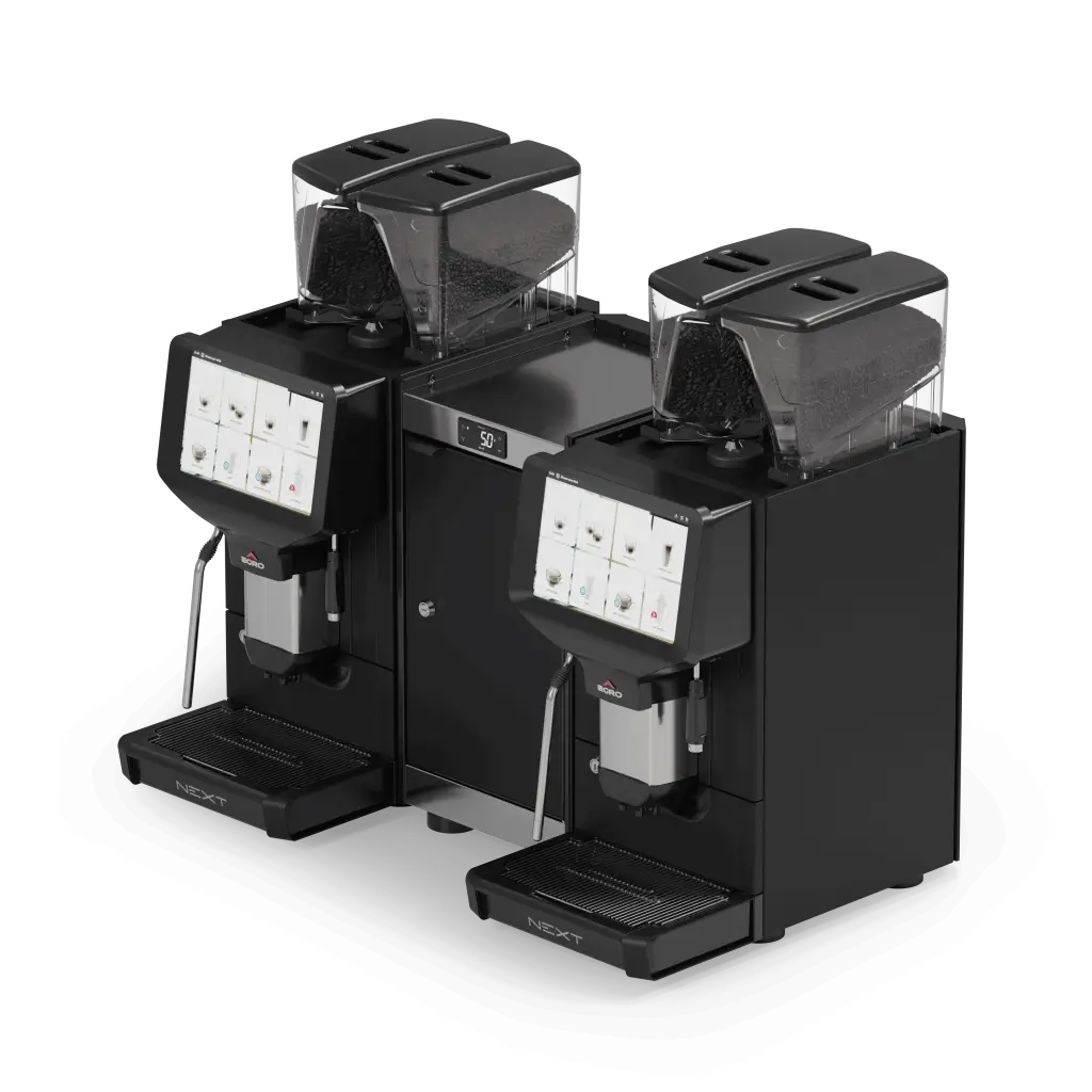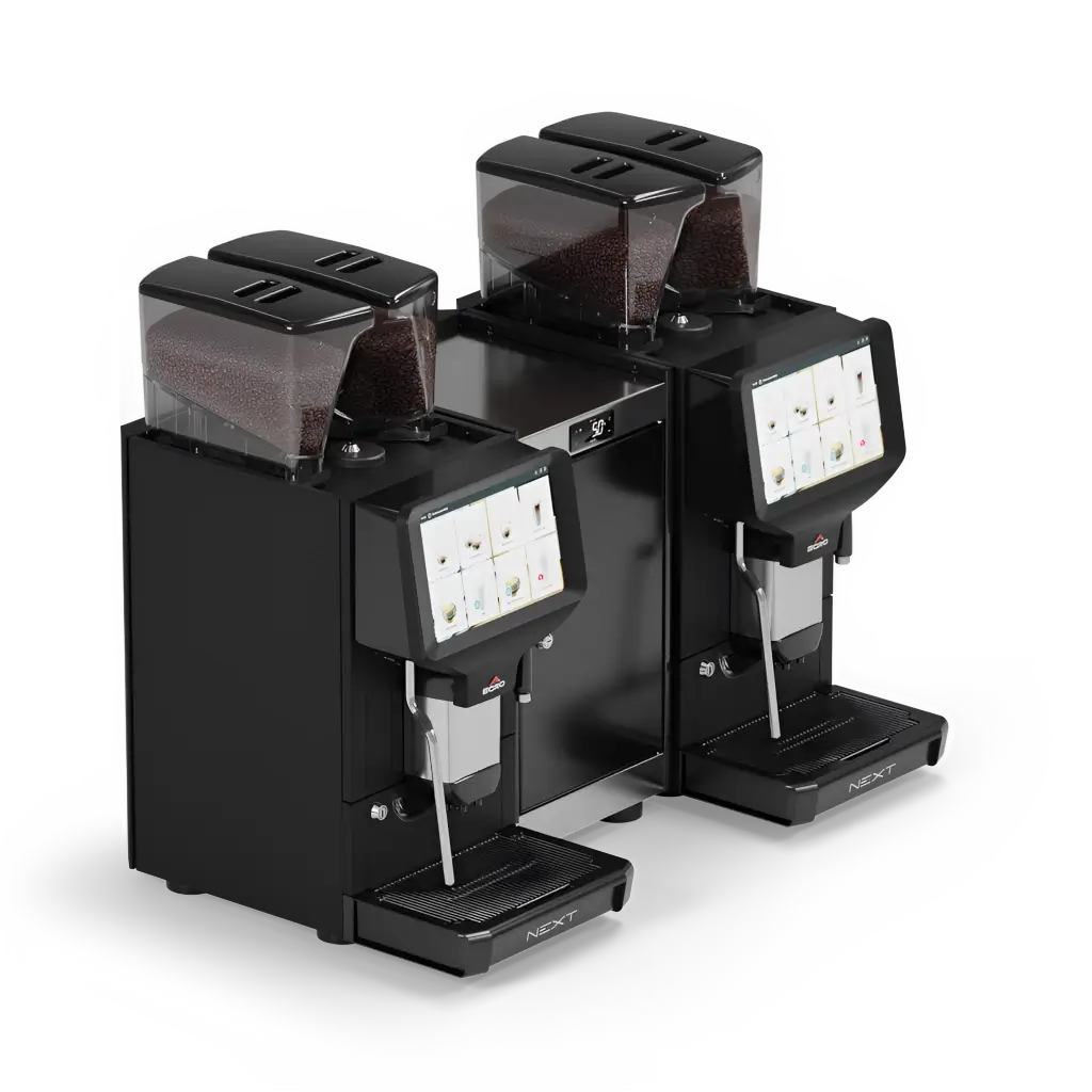 Flagowy model w rodzinie Next, zbudowany jako podwójny system o imponującej wydajności 600 filiżanek dziennie Ma szerszy korpus (szerokość 900 mm) i waży 143 kg ale dzięki temu pozwala na równoległe parzenie dwóch napojów i obsługę dużych kolejek. Wyposażony jest w system NMS+ i wszystkie funkcje znane z modeli Pure Coffee SV i NMS+, w tym iButton, Multi‑Drink i tryb samoobsługowy. Według mnie to idealny „kombajn” dla bardzo ruchliwych lokali lub cateringu.